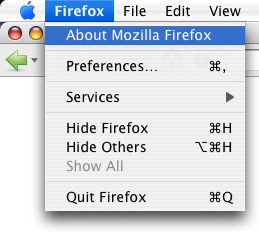 Launch Mozilla Firefox. Click on Firefox in the upper left-hand corner of the computer screen (next to the Apple symbol). Click About Mozilla Firefox. A window appears that provides information about the browser. The version is located below the browser name.