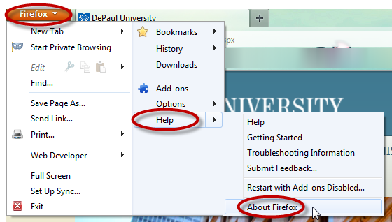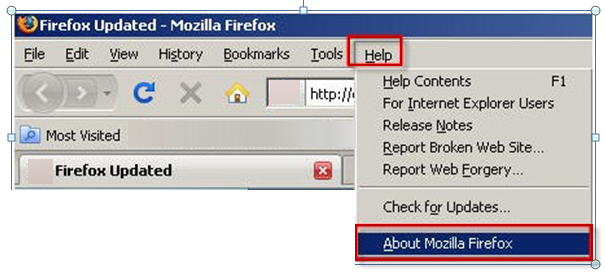 If you see a menu bar, Click Help. Click About Mozilla Firefox. A window appears that provides information about the browser. The version is located below the browser name.