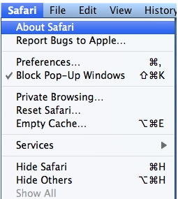 Open Safari. Click Safari in the upper left-hand corner of the computer screen (next to the Apple symbol). Choose About Safari from the drop-down menu. The version will be listed.